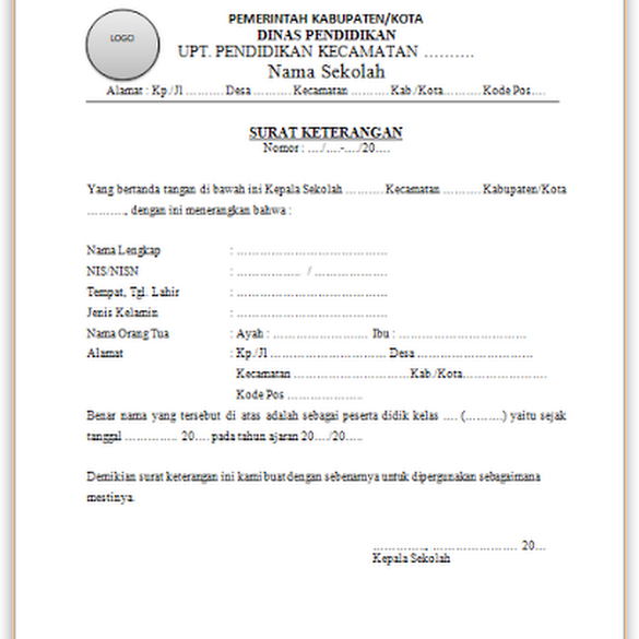 Contoh surat keterangan sekolah paket c Contoh Surat Keterangan Siswa Aktif Sekolah